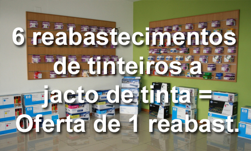 Por cada 6 reabastecimentos de tinteiros a jacto de tinta, oferecemos 1 reabastecimento totalmente grátis.